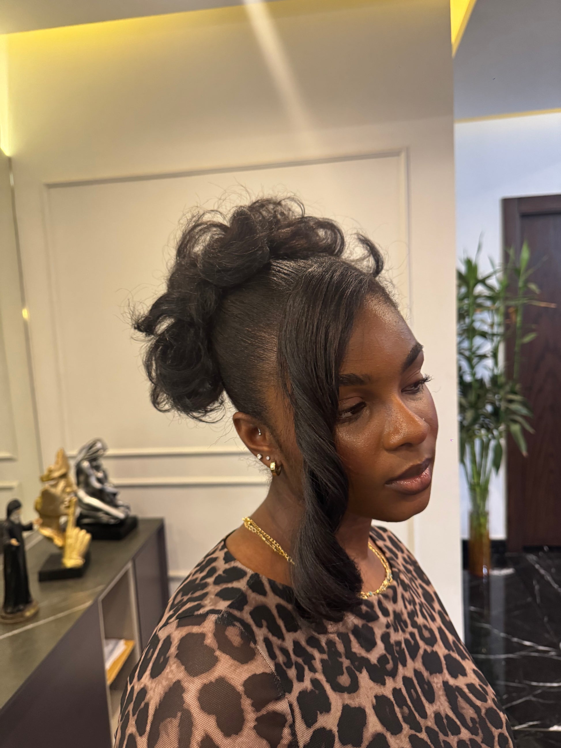 This two-piece set includes a voluminous curly ponytail and a front clip-in that blends seamlessly with your natural hairline — giving you a full, salon-fresh look in minutes. Whether you’re going for a sleek pony or a carefree messy bun, The Kels Set is designed to keep you looking effortlessly put together.